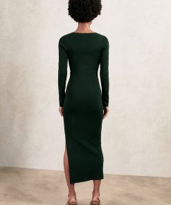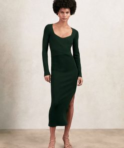 The Sophia dress is knitted in a compact stretch fabric for a smooth, sculpted fit. Its wrap-style front meets a notched sweetheart neckline, while a side slit adds ease of movement to the midi silhouette. Compact knit Wrap-style front Notched sweetheart neckline Long sleeves Side slit The model is wearing a size 8 Measurements of model: 5ft9 / 175cm Regular side neck to hem 51″ / 129cm.