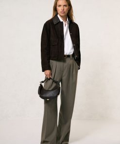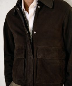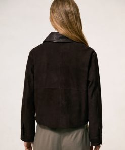 Reiss Women’s Leather-collar Suede Jacket In Chocolate Brown | Chocolate Brown