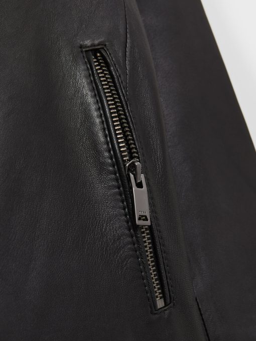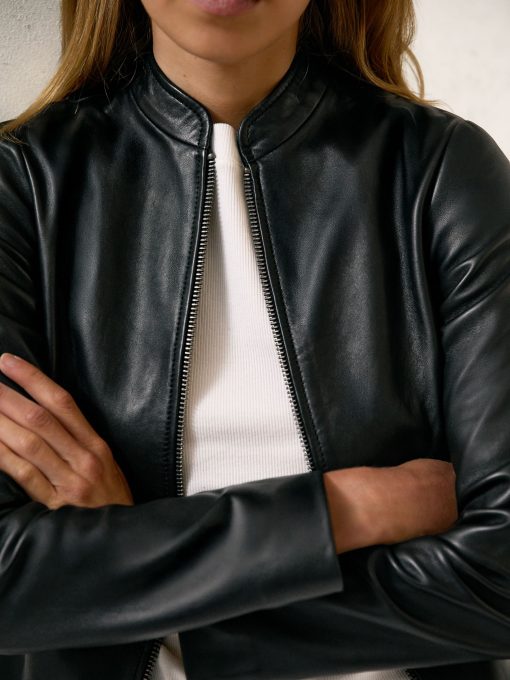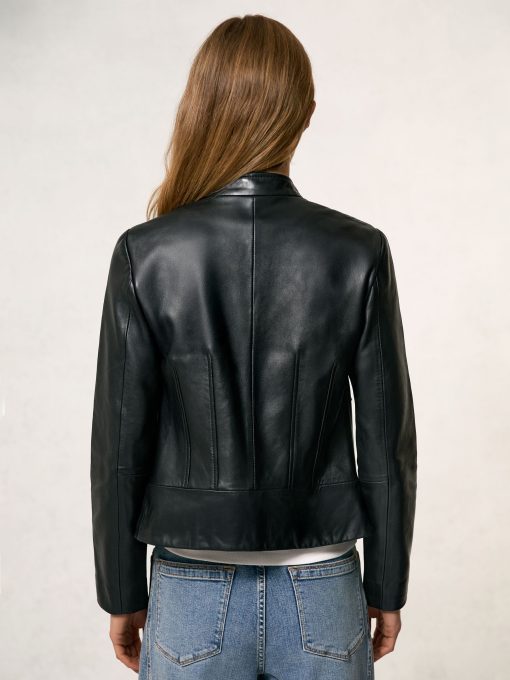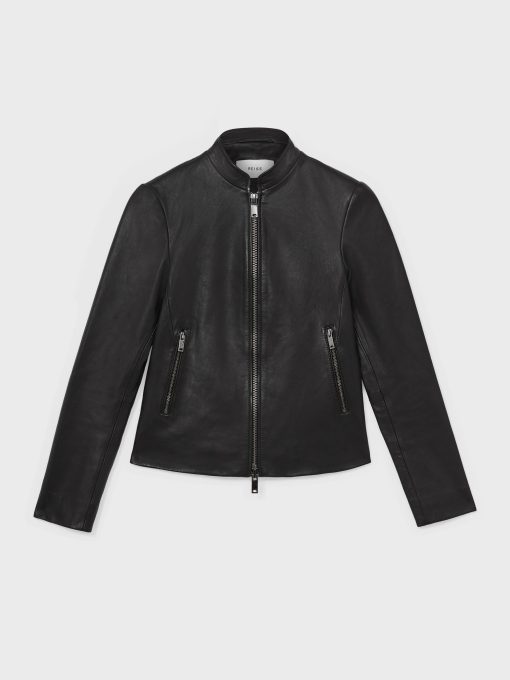 Reiss Women’s Leather Collarless Biker Jacket In Black | Black