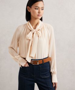 Reiss Women’s Leather Half Keeper Belt In Tan | Tan