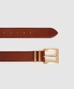 The tan Brompton belt is an effortlessly wearable style for complimenting outfits. It's crafted from supple leather bordered by tonal topstitching. Wear it to anchor high-rise jeans and a tucked-in shirt. Leather fabrication Tonal top-stitching Gold-tone metal buckle Width 3.5cm