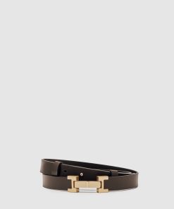 Reiss Women’s Leather Square Hinge Belt In Chocolate | Chocolate