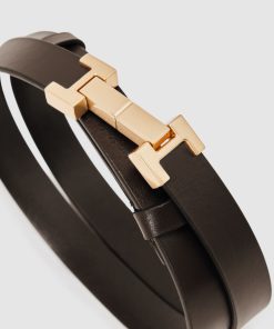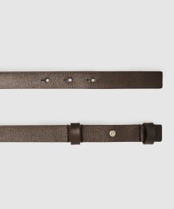 The Hayley chocolate belt is crafted from 100% leather and is punctuated by a gold-tone square hinge detail. Finished with a pin-and-tuck closure, it adds a refined touch to any outfit. 100% leather Square hinge hardware Pin-and-tuck closure Width 2cm