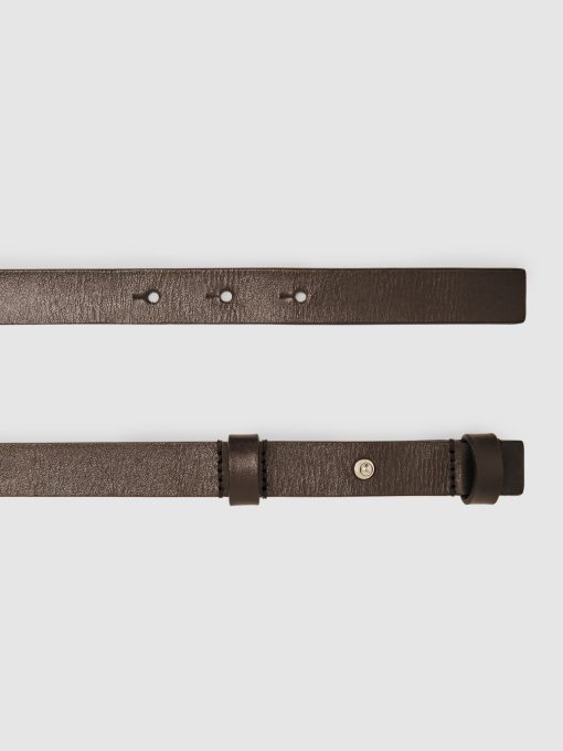 Reiss Women’s Leather Square Hinge Belt In Chocolate | Chocolate