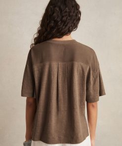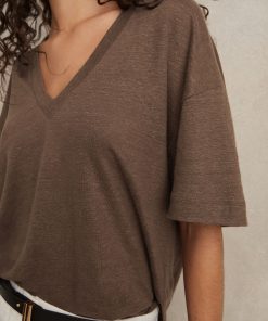 Reiss Women’s Linen V-neck T-shirt In Brown | Brown
