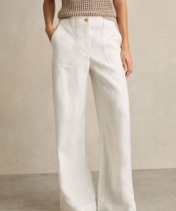 Reiss Women’s Linen Wide Leg Trousers In White | White