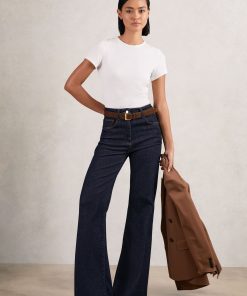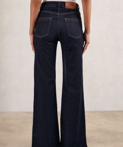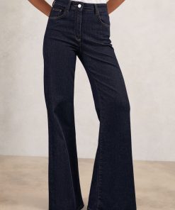 The Dark Blue Bonnie jeans are a modern take on classic denim, featuring a flattering mid-rise and a chic flared silhouette. With five-pocket styling and a front button and zip closure, they offer both a timeless appeal and effortless wearability, perfect for elevating everyday looks. Denim Flared Mid-rise Five pockets Front button and zip The model is wearing a size 26. Measurements of model: Height 5ft 10″ / 177.8cm. Regular inside leg length 60″ / 152cm.