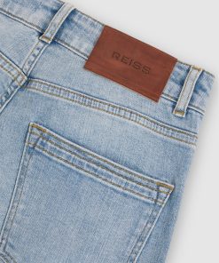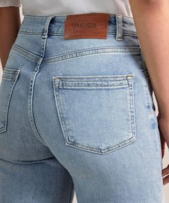 The Light Blue Bonnie jeans are a modern take on classic denim, featuring a flattering mid-rise and a chic flared silhouette. With five-pocket styling and a front button and zip closure, they offer both timeless appeal and effortless wearability, perfect for elevating everyday looks. Denim Flared Mid rise Five pockets Front button and zip Belt not included The model is wearing a size 26. Measurements of model: Height 5ft 10″ / 177.8cm.