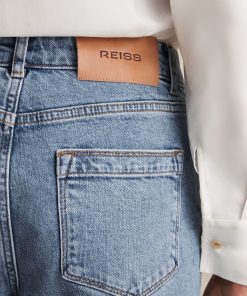 The Light Blue Selin jeans are a timeless straight-leg style designed to elevate your everyday wardrobe. Cut from soft, stretch-infused denim, they sit at a flattering mid-rise and fall to a slightly cropped length for a modern finish. Straight leg Mid rise Light feathering at the thigh Five pockets Front button and zip Belt not included The model is wearing a size 26. Measurements of model: Height 5ft 9″ / 175cm. Regular inside leg length 27″ / 69cm.