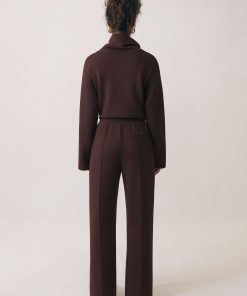 The Dark Chocolate Brown Jemma joggers are crafted from our premium cloud interlock, a silky-soft modal-blend jersey with a beautiful drape. Featuring wide legs and front pintucks, they offer a relaxed yet polished look, with an elasticated drawstring waist for an adjustable fit. Modal-blend interlock jersey Wide leg Front pintucks Side slip pockets Elasticated drawstring waist