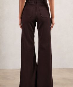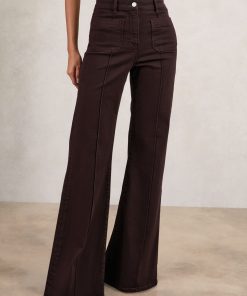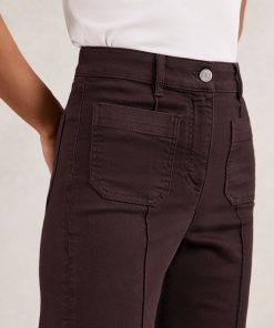 The Burgundy Sakura jeans are cut with a modern flared leg, defined by front patch pockets and elongating pintucks that run from waist to hem. A high-rise waist further enhances the lengthened silhouette. Cotton-blend denim Flared High rise Pintucks Patch pockets Front button and zip The model is wearing a size 26. Measurements of model: Height 5ft 9″ / 175cm. Regular inside leg length 32″ / 81cm.