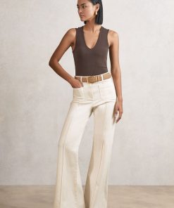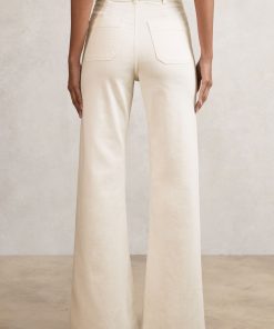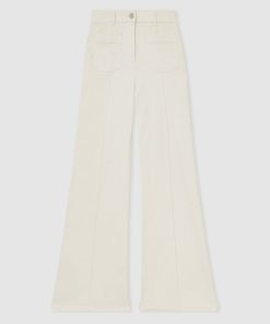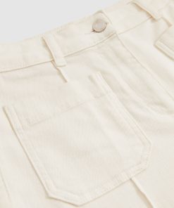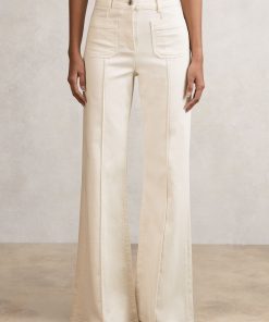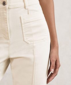The Ecru Sakura jeans are cut with a modern flared leg, defined by front patch pockets and elongating pintucks that run from waist to hem. A high-rise waist further enhances the lengthened silhouette. Cotton-blend denim Flared high-rise Pintucks Patch pockets Front button and zip The model is wearing a size 26. Measurements of model: Height 5ft 10″ / 177.8cm. Regular inside leg length 32″ / 81cm.
