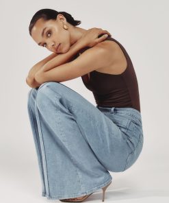 The Light Blue Sakura jeans are cut for a modern flare and are elevated by two patch pockets at the front. Subtle pintucks from waist to hem elongate the leg, whilst faded patches create a more casual edge. Cotton-blend denim Flared High rise Pintucks Fading Patch pockets Front button and zip Belt not included The model is wearing a size 26. Measurements of model: 5ft 10″ / 177.8cm. Regular inside leg length 32″ / 81cm.