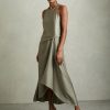 An occasion-ready gown crafted from crepe, the Greta maxi dress is perfect for evening events. The removable cape flows from a high neckline to a floor-length finish, and can also be positioned for a sleeveless look that adds a layer to the dress’s front. Crepe fabricationRemovable floor-length cape High necklineSleevelessConcealed zip to reverse Petite side neck to hem 50.5″ / 128cm.