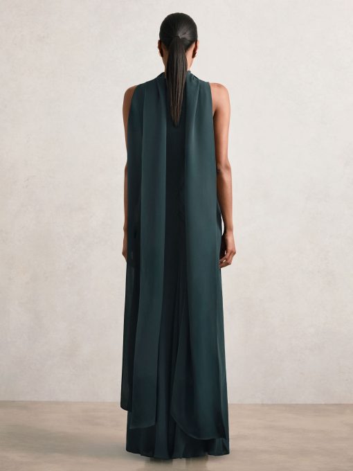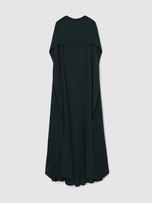 An occasion-ready gown crafted from crepe, the Greta maxi dress is perfect for evening events. The removable cape flows from a high neckline to a floor-length finish, and can also be positioned for a sleeveless look that adds a layer to the dress’s front. Crepe fabricationRemovable floor-length cape High necklineSleevelessConcealed zip to reverse Petite side neck to hem 50.5″ / 128cm.