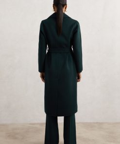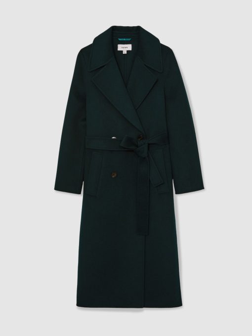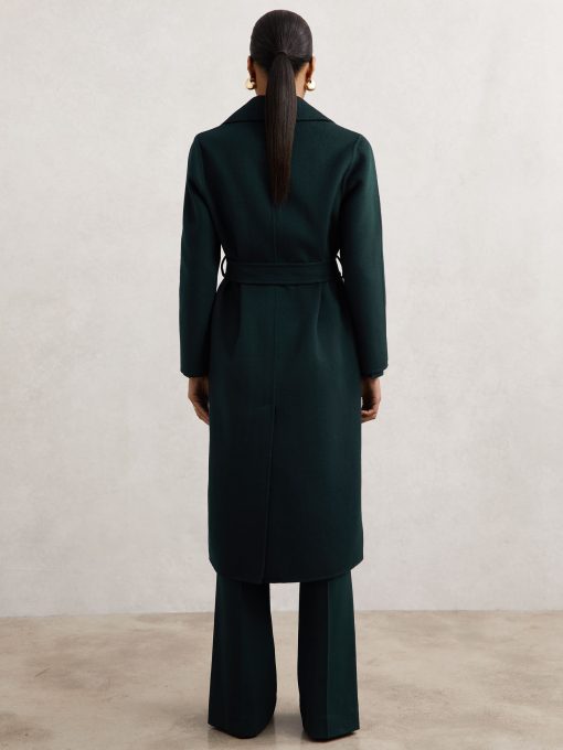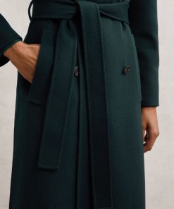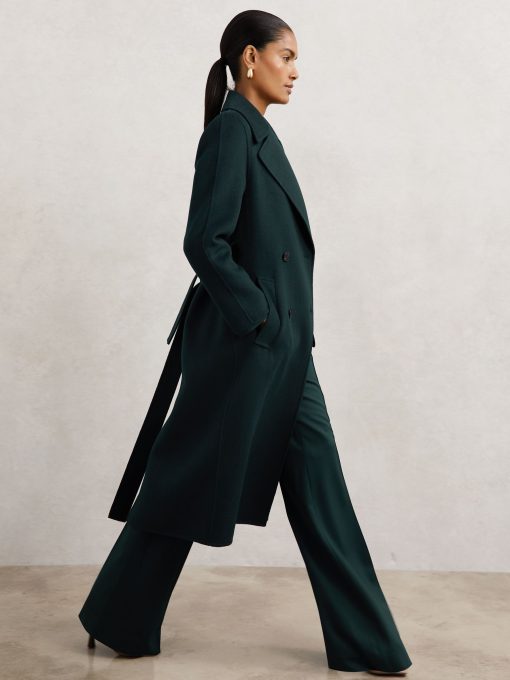 The Rene coat is tailored from a double-faced wool blend with blind seams and no lining, offering the same smooth, premium feel inside and out. It's double-breasted silhouette is secured with four buttons and a self-tie belt, balancing structure with fluidity. Wool blend. Blindseam construction. Double-breasted. Notch lapels. Self-tie belt. No lining. Petite centre back neck to hem 43″ / 109cm.