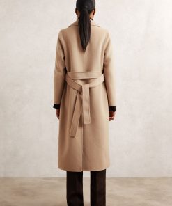 The Rene coat is tailored from a double-faced wool blend with blind seams and no lining, offering the same smooth, premium feel inside and out. It's double-breasted silhouette is secured with four buttons and a self-tie belt, balancing structure with fluidity. Wool blend. Blindseam construction. Double-breasted. Notch lapels. Self-tie belt. No lining. Petite centre back neck to hem 43″ / 109cm.