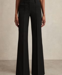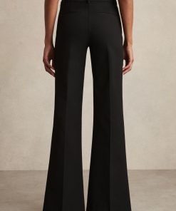 A signature high-rise, flared cut is chosen for the black Claude trousers. Pinched front seams and pockets refine the look and a high-stretch fabric perfects the fit. High rise Pinched front seams Jetted front pockets Flared leg The model is wearing a size 8. Measurements of model: Height 5ft 10″ / 178cm. Petite inside leg length 30″ / 76cm.