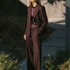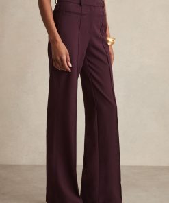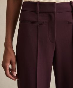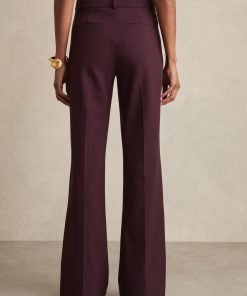 A signature high-rise, flared cut defines the burgundy Claude trousers. Pinched front seams and pockets refine the look, while a high-stretch fabric ensures a flawless fit. High rise Pinched front seams Jetted front pockets Flared leg The model is wearing a size 8. Measurements of model: Height 5ft 10″ / 177.8cm. Petite inside leg length 30″ / 76cm.