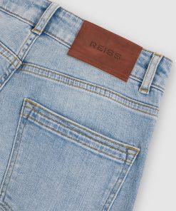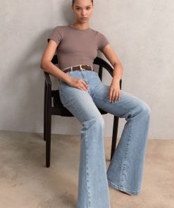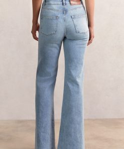 The Light Blue Bonnie jeans are a modern take on classic denim, featuring a flattering mid-rise and a chic flared silhouette. With five-pocket styling and a front button and zip closure, they offer both timeless appeal and effortless wearability, perfect for elevating everyday looks. Denim Flared Mid rise Five pockets Front button and zip Belt not included The model is wearing a size 26. Measurements of model: Height 5ft 10″ / 177.8cm. Petite inside leg length 32″ / 81cm.