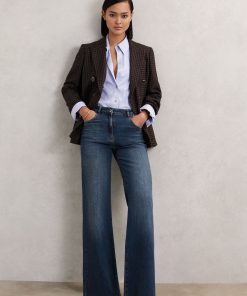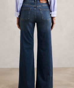 The Mid-Blue Bonnie jeans are a modern take on classic denim, featuring a flattering mid-rise and a chic flared silhouette. With five-pocket styling and a front button and zip closure, they offer both a timeless appeal and effortless wearability, perfect for elevating everyday looks. Denim Flared Mid-rise Five pockets Front button and zip Belt not included The model is wearing a size 26. Measurements of model: Height 5ft 10″ / 177.8cm. Petite inside leg length 32″ / 81cm.