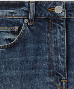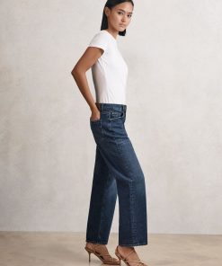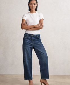 The Mid Blue Selin jeans are a timeless straight-leg style, designed to elevate your everyday wardrobe. Cut from soft, stretch-infused denim, they sit at a flattering mid-rise and fall to a slightly cropped length for a modern finish. Straight leg Mid rise Light feathering at the thigh Five pockets Front button and zip The model is wearing a size 26. Measurements of model: 5ft 9.5″ / 176.5cm. Petite inside leg length 27″ / 69cm.