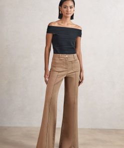 The Taupe Neutral Sakura jeans are cut with a modern flared leg, defined by front patch pockets and elongating pintucks that run from waist to hem. A high-rise waist further enhances the lengthened silhouette. Cotton-blend denim Flared High rise Pintucks Patch pockets Front button and zip The model is wearing a size 26. Measurements of model: Height 5ft 9″ / 175cm. Petite inside leg length 30″ / 76cm.