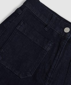 A modern take on vintage denim, the Dark Blue Bella jeans are crafted from soft stretch cotton-modal. Their high-rise waist and wide-leg silhouette channel a subtle ’70s mood, with front patch pockets adding structure and charm. Cotton-modal denim with stretch Wide leg High rise Front patch pockets Front button and zip The model is wearing a size 26. Measurements of model: Height 5ft 9' / 175cm. Petite inside leg length 30″ / 76cm.