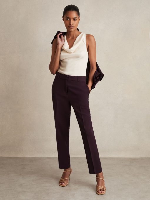 The berry Gabi slim-fit suit trousers are cut from a smooth-feel fabrication for comfortable, sleek wear. Matching blazer Mid-rise Side pockets Pressed creases Slim fit The model is wearing a size 8. Measurements of the model: Height 5ft 10″ / 177.8cm.