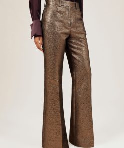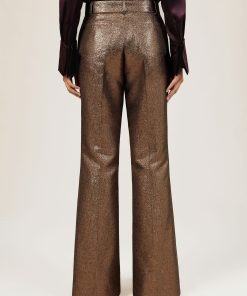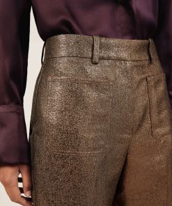 Woven with metallic thread that catches the light, the Sienna trousers bring a touch of sparkle to evening ensembles. The flared silhouette is subtly elevated by twin patch pockets at the front, echoing the two pockets at the back. Cotton blend with metallic thread Flared Mid-rise Patch pockets Double hook-and-bar fastening Petite inside leg length 30″ / 76cm.