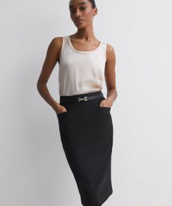 Upgrade your workwear options with the black Haisley skirt, blended with premium wool yarns for a soft and comfortable wear. This style is crafted in a pencil shape, a flattering style for the silhouette. Tuck in one of our elegant cami tops underneath the coordinating blazer for a sleek office edit. High waist Zip closure Jetted pockets to each hip Single vent to reverse Tailored fit The model is wearing a size 8. Measurements of model: 5ft 10″ / 177.8cm. Petite waistband to hem 23″ / 59cm.