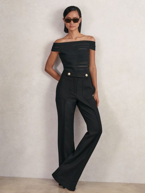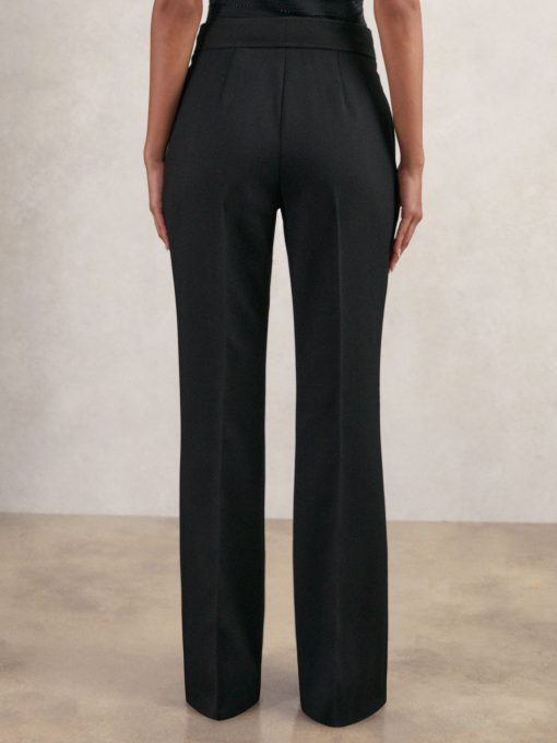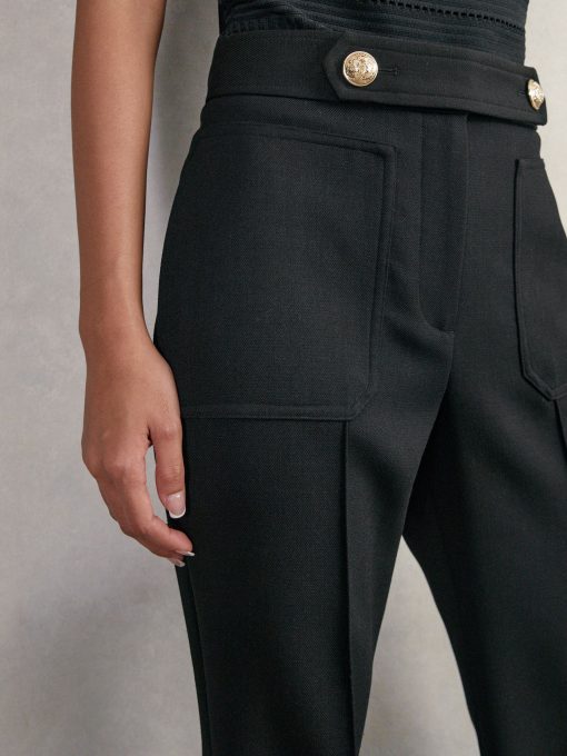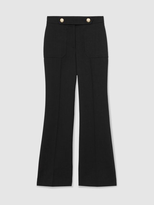 Crafted from a structured twill fabric in a flared silhouette, the Lily trousers are a refined style, perfect for any occasion. Crest-embossed buttons punctuate the waist tab, adding a polished finish, while front patch pockets lend a modern twist. Twill fabric with wool Flared Front patch pockets Front pleats Dual button waist tab with zip The model is wearing a size. Measurements of model: Height 5ft9'/175cm.