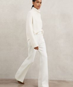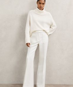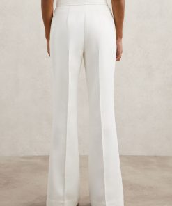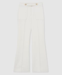 Crafted from a structured twill fabric in a flared silhouette, the Lily trousers are a refined style, perfect for any occasion. Crest-embossed buttons punctuate the waist tab, adding a polished finish, while front patch pockets lend a modern twist.Twill fabric with woolFlaredFront patch pocketsFront pleatsDual button waist tab with zip