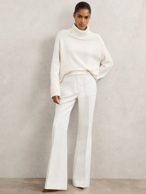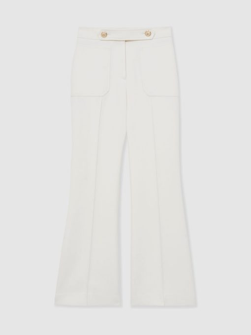 Crafted from a structured twill fabric in a flared silhouette, the Lily trousers are a refined style, perfect for any occasion. Crest-embossed buttons punctuate the waist tab, adding a polished finish, while front patch pockets lend a modern twist.Twill fabric with woolFlaredFront patch pocketsFront pleatsDual button waist tab with zip