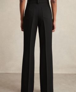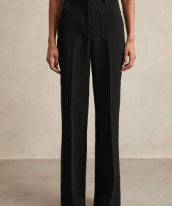 Crafted from smooth twill, the Black Priya trousers offer a modern take on tailored elegance. With a high-rise fit and flared legs, they feature patch pockets for added utility and a hook-and-bar fastening with a zip for a sleek finish. Twill Flared High rise Patch pockets Hook and bar fastening with zip The model is wearing a size 8. Measurements of model: Height 5ft 10″ / 177.8cm. Petite inside leg length 30.5″ / 78cm.