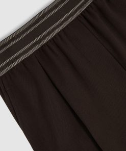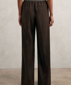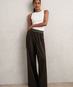 An elasticated waistband detailed with thin stripes lends a casual edge to the Camelia trousers. Crafted from a soft twill fabric, they’re draped to a relaxed wide-leg and refined with front pleats.Wide legContrasting elasticated waistbandFront pleatsSide slip pockets The model is wearing a size 8 Measurements of model: Height 5 10″ / 177.8cm Petite inside leg length 28″ / 71cm.