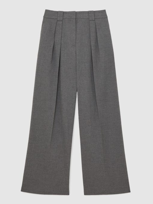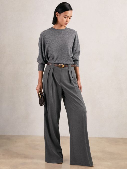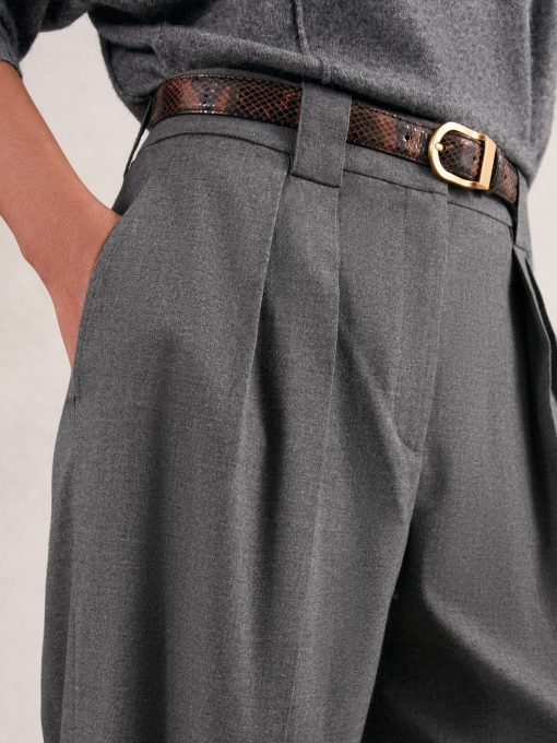 The Poppie trousers are tailored from premium flannel fabric, with double front pleats and a wide leg for a refined sense of volume. Pressed creases and a clean fastening complete the polished look. Wide leg Double pleats Side slip pockets Double hook-and-bar with zip The model is wearing a size 8 Measurements of model: Height 5ft 9' / 175cm Petite inside leg length 28″ / 71cm.