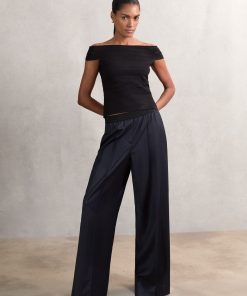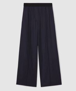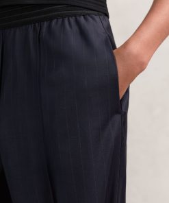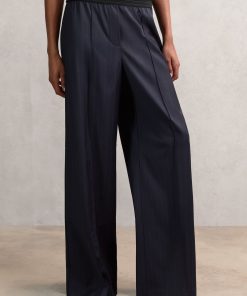 The Neave trousers are crafted from a fluid wool-blend twill that drapes to an effortless wide-leg silhouette. Subtly elevated by pinstripes, they have a comfortable elasticated waistband for both style and ease. Wool blend Pinstripes Wide leg Elasticated stripe waistband Front pintucks. The model is wearing a size 8. Measurements of model: Height 5'10' / 177.8cm. Petite inside leg length 28″ / 71cm.