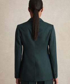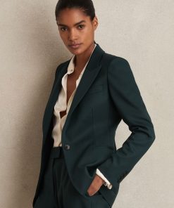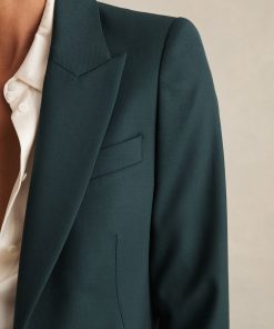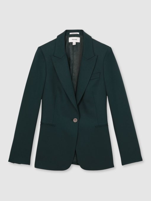 The Jade blazer is tailored to a single-breasted silhouette and crafted from a smooth wool blend. Lightly padded shoulders and peak lapels lend structure to the topline, while a single button fastens neatly at the front. Wool blend Single-breasted Peak lapels Lightly padded shoulders Lined Single vent to reverse The model is wearing a size 8. Measurements of model: Height 5ft 10″ / 177.8cm.