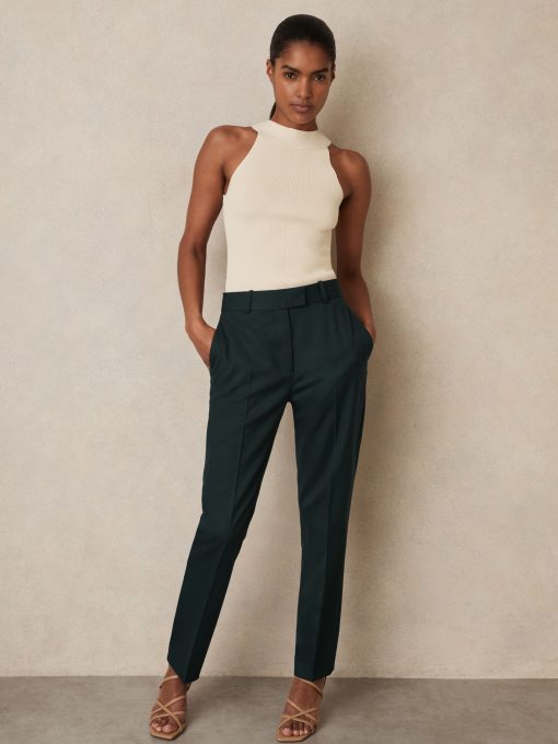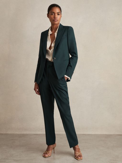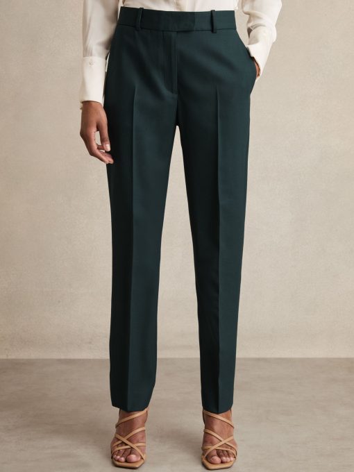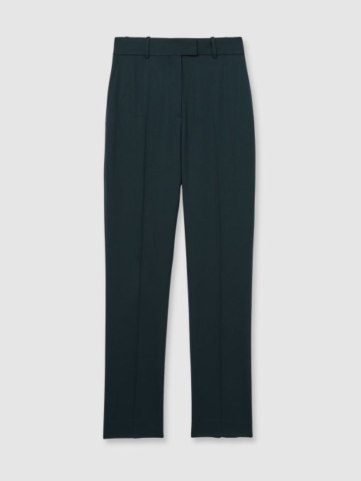 The Jade trousers are tailored to a slim fit, with pressed creases maintaining their polished shape. They re crafted from a smooth wool blend with added stretch for comfort and ease of movement. Wool blend with stretch Slim fit Side slip pockets Double hook-and-bar with zip The model is wearing a size 8. Measurements of model: Height 5ft 10″ / 177.8cm.