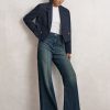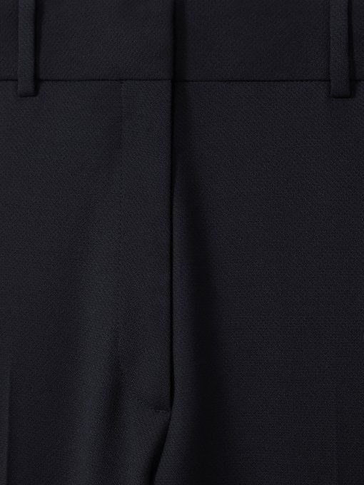 Upgrade your workwear options with the Navy Haisley, blended with premium wool yarns for a soft and comfortable wear. They re engineered in a flared silhouette, a flattering style for the figure. Tuck in a white blouse underneath the coordinating blazer for a polished office edit. Wool blend Mid-rise Belt loops Zip fly and hook fastening Slip pockets to each hip Pressed creases Buttoned jetted pockets to reverse Flared leg The model is wearing a size 8. Measurements of model: Height 5ft 9″ / 175cm.