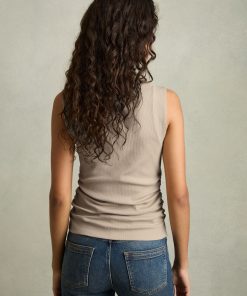The camel Trudy updates a classic vest shape with flattering ruching to the waist and refined capped sleeves. Its ribbed cotton composition is blended with stretch to comfortably hug the body. Cotton blend Ribbed Capped sleeves Ruched detailing to the sides The model is wearing a size S. Measurements of model: Height 5ft 10″ / 177.8cm.
