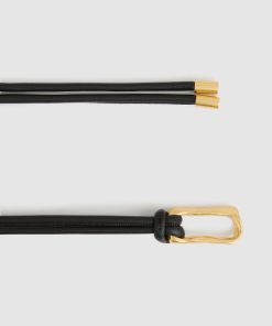 The black Tara belt features smooth cords that tie onto a polished ring buckle with a modern sculpted design. The ties hang loose to add effortless elegance to suiting and off-duty daywear. Tubular design Gold-tone metal buckle Tie fastening Width 1cm