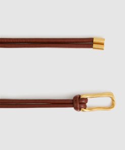 The tan Tara belt features smooth cords that tie onto a polished ring buckle with a modern sculpted design. The ties hang loose to add effortless elegance to suiting and off-duty daywear. Tubular design Gold-tone metal buckle Tie fastening Width 1cm