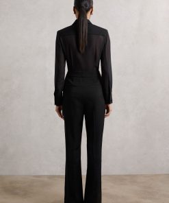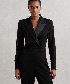 Reiss Women’s Sheer-sleeve Tuxedo Jumpsuit In Black | Black