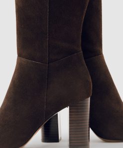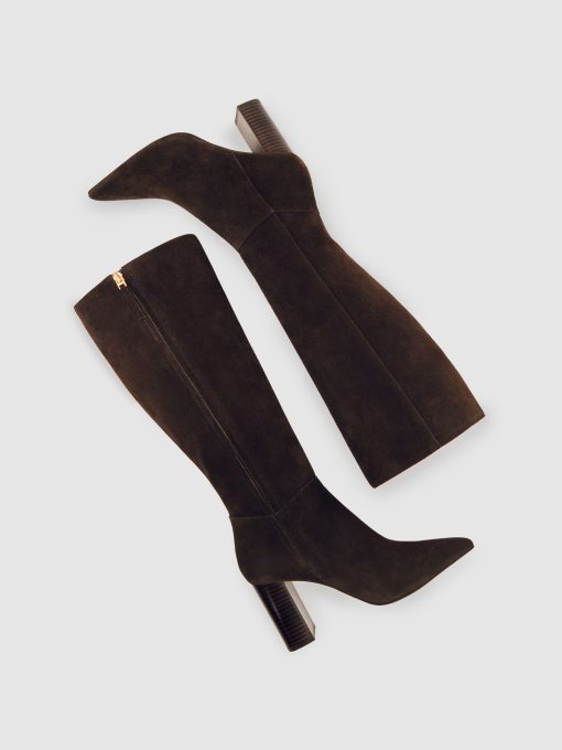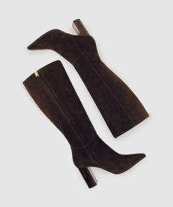 The Chocolate Bianca knee-high suede boots have a timeless silhouette and are designed with a pointed toe and a zip fastening on the leg. Set on a high stacked-effect block heel for instant elevation. 100% suede Knee high Pointed toe Block heel Side zip Heel height 8.5cm.
