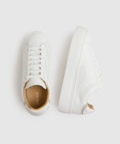The White Francesca trainers are a fresh take on our bestselling low-top silhouette. They’re crafted from leather with a chunky sole and decorative perforations. The heel tab is fitted separately with stitching and suede detailing. 100% Leather Decorative perforations Lace-up style Suede detailing Separate heel tab Gold-tone foiled logo