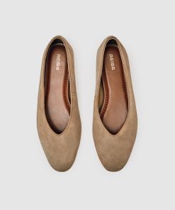 The Taupe Amelia ballet flats are crafted from suede for a soft, supple feel. Designed with a high-cut vamp and an elongated rounded toe, they bring a modern twist to a timeless style. 100% suede High vamp Elongated rounded toe Rubber outsole Heel height 1cm.