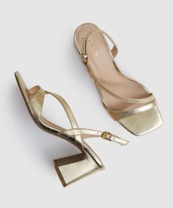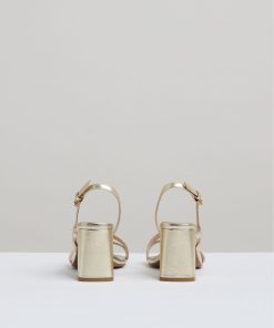 The gold-tone Alice sandals are an open-toe design with leather straps and a chunky heel. A metallic finish adds a touch of modern elegance. Leather construction Square shape Strappy design Adjustable ankle fastening Block heel Heel height 7cm.