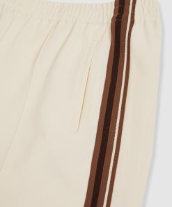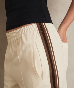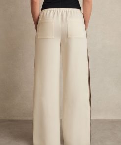 Crafted from jersey twill, the Robyn trousers blend relaxed tailoring with a sporty edge. The wide-leg silhouette is accented by dynamic side stripes, while an elasticated waistband ensures effortless comfort. Front pintucks add a touch of structure, balancing ease with refinement. Jersey twill Wide leg Side stripes Elasticated waistband Front pintucks The model is wearing a size 8. Measurements of model: 5ft 9.5″ / 177cm. Regular inside leg length 30″ / 76cm.
